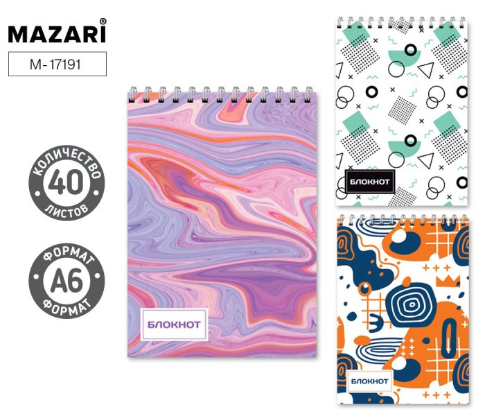Блокнот А6 40л. на гребне кл. обл.картон М-17191
