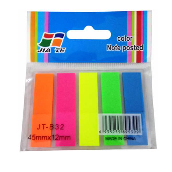 Самоклеящиеся пластиковые закладки ярких неоновых цветов. Подходят для крепления на любой поверхности. Легко отклеиваются, не оставляя следов. 5 цветов, размер - 45х12 мм. В блоке 25 листов каждого цвета. Упаковка в пакет с европодвесом.