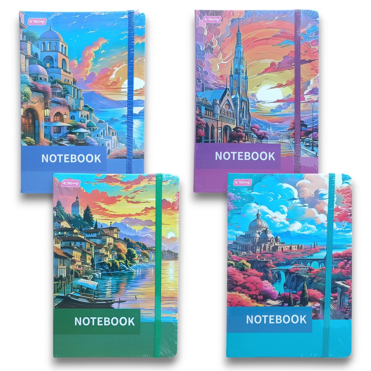 Недатированный ежедневник формата А5. 80 листов в клетку, кремовая бумага. Твердая книжная обложка, снабжена резинкой-фиксатором. Цвет и рисунок обложки в ассортименте, 4 варианта.