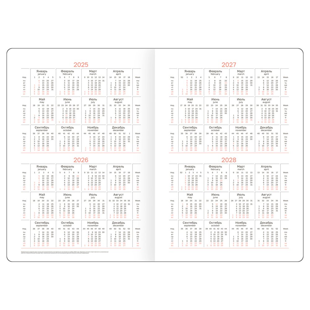 Практичная закладка-ляссе поможет быстро найти нужную страницу, а тонированный в цвет обложки срез придаёт изделию завершенный и стильный вид. Внутри предусмотрена справочная информация, годовой планер, календарь и другие полезные сведения. Подходит под персонализацию. Индивидуальная упаковка в термоусадочную пленку.