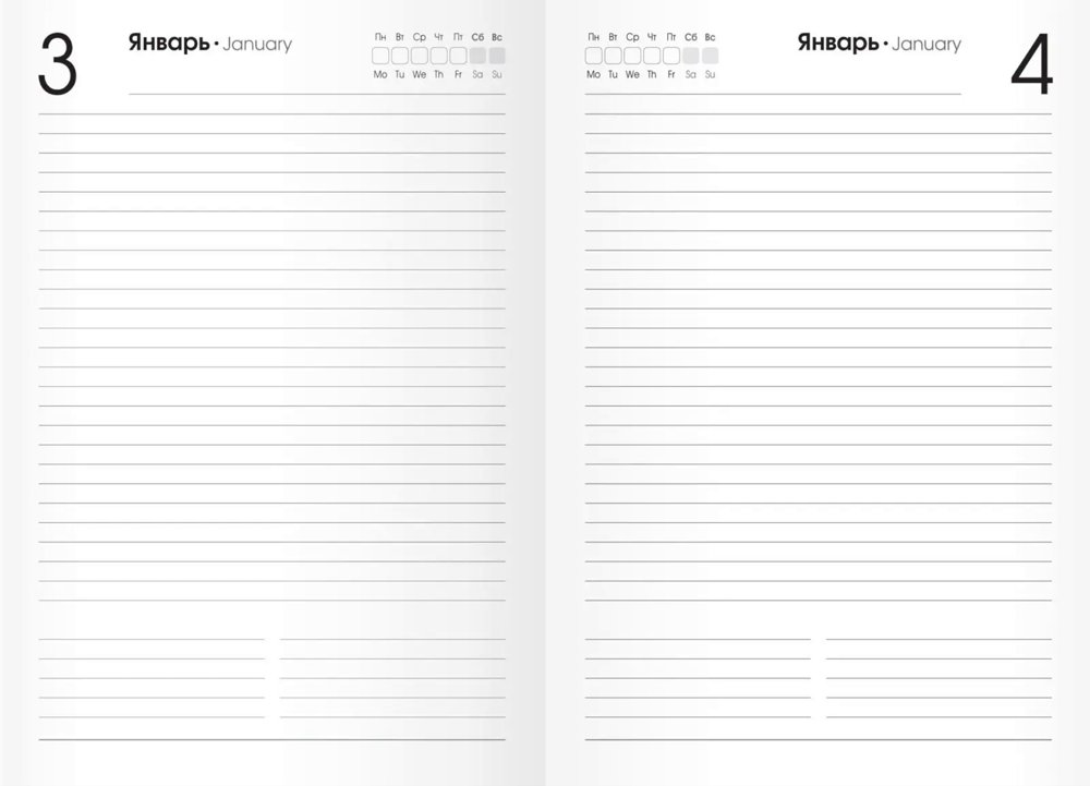 Твердая обложка, полудатированный, удобный формат - А5. Блок - 192 листа в линию, офсетный, белый.