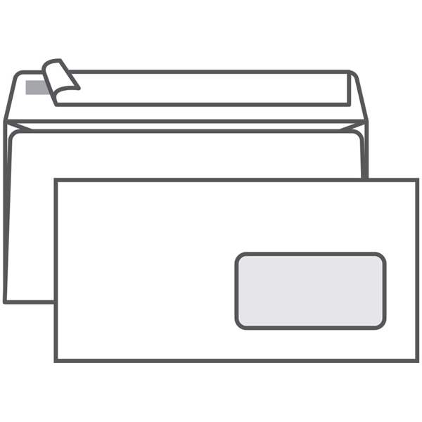 Конверт евроформата размером 110х220мм без подсказа, с окном, расположенным справа.