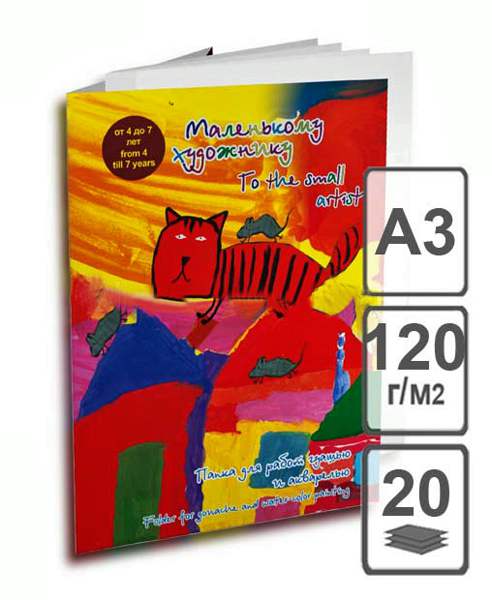Папка для работ гуашью и акварелью 297*420мм "Маленькому художнику" 20 листов, 120г/м2, Лилия Холдинг, А3.