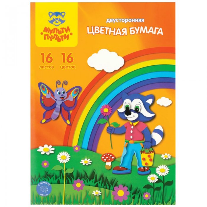 Бумага цв. А4 двухст. 16лис. 16цв.Мульти-Пульти, офсетная в папке БЦо16-16дв_13974