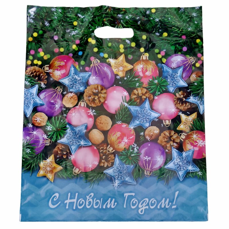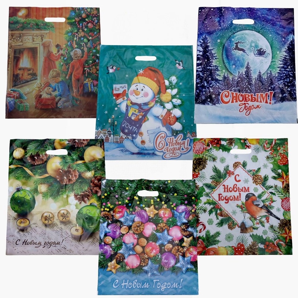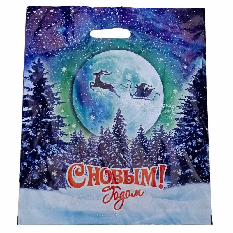 Пакет полиэтиленовый "Новогодний", размером 40*50 см. Цвета и рисунки в ассортименте.