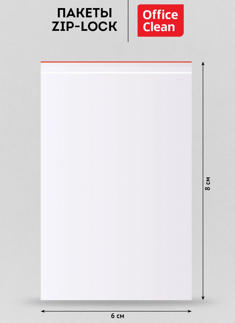 Пакетик с замочком 6*8 "Zip Lock" (100шт.) OfficeClean, 60*80мм, ПВД, 32мкм 339272