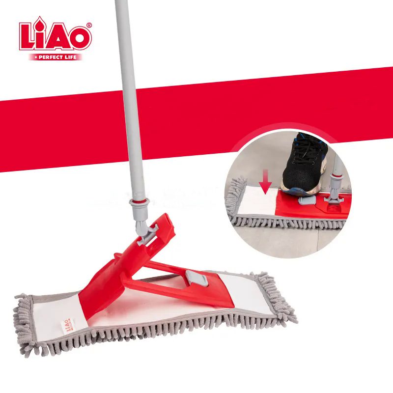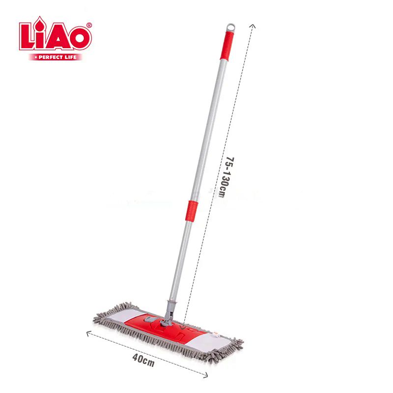 "Liao" А130010 - швабра паркетная. Насадка микрофибра 40х15 см, рукоятка металлическая, раздвижная, съемная 75-130 см (Китай). Предназначена для сухой и влажной уборки гладких поверхностей (пола, стен, потолков).