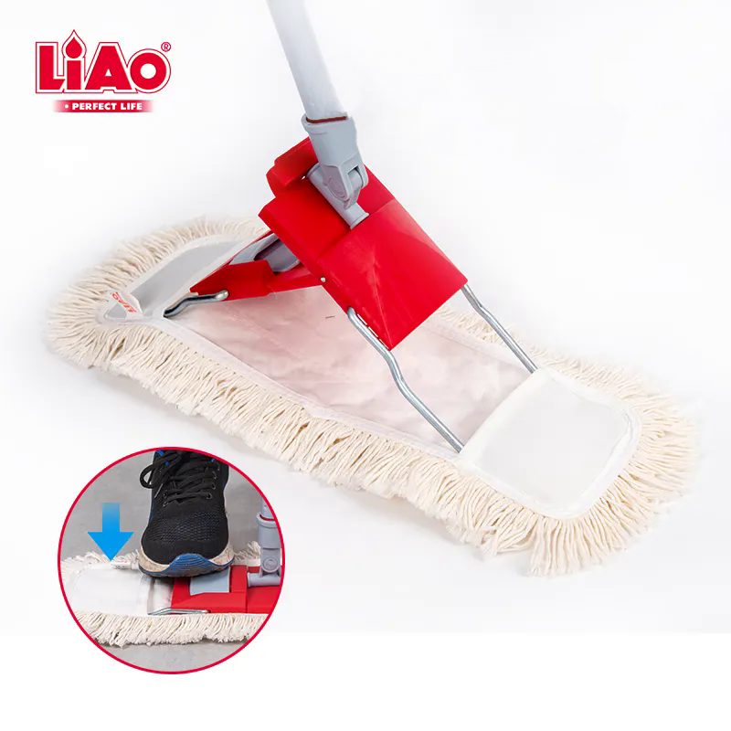"Liao" А130012 - швабра паркетная. Насадка хлопок 40х15 см, рукоятка металлическая, раздвижная, съемная 75-130 см (Китай). Используется для уборки гладких поверхностей. Обладает отличными чистящими и абсорбирующими свойствами.