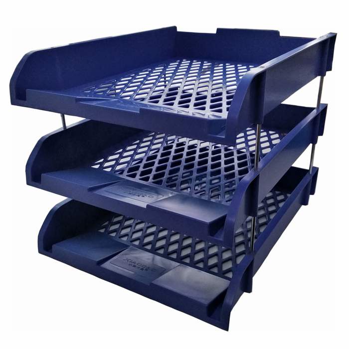 Горизонтальный лоток, 3 отделения. Функциональная и легкая конструкция. Лотки надёжно стыкуются друг с другом соединительными элементами. Для листов формата А4. Гладкая поверхность, цвет синий.