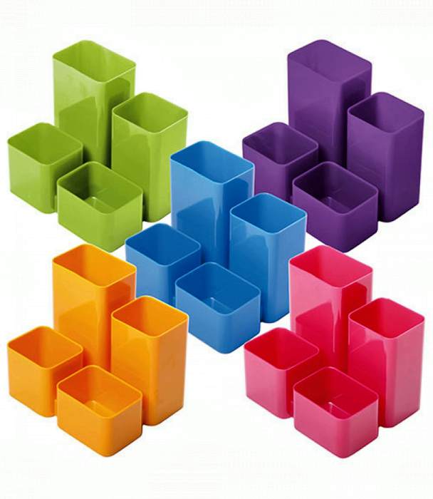Отличается удачным сочетанием вместительности и компактности. 4 отделения для канцелярских принадлежностей. Гладкая глянцевая поверхность, прочный корпус изделия, материал полистирол.