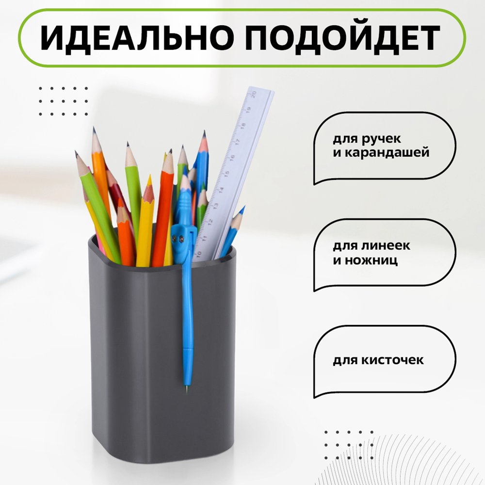 Вместительный стакан для канцелярских принадлежностей классического дизайна.