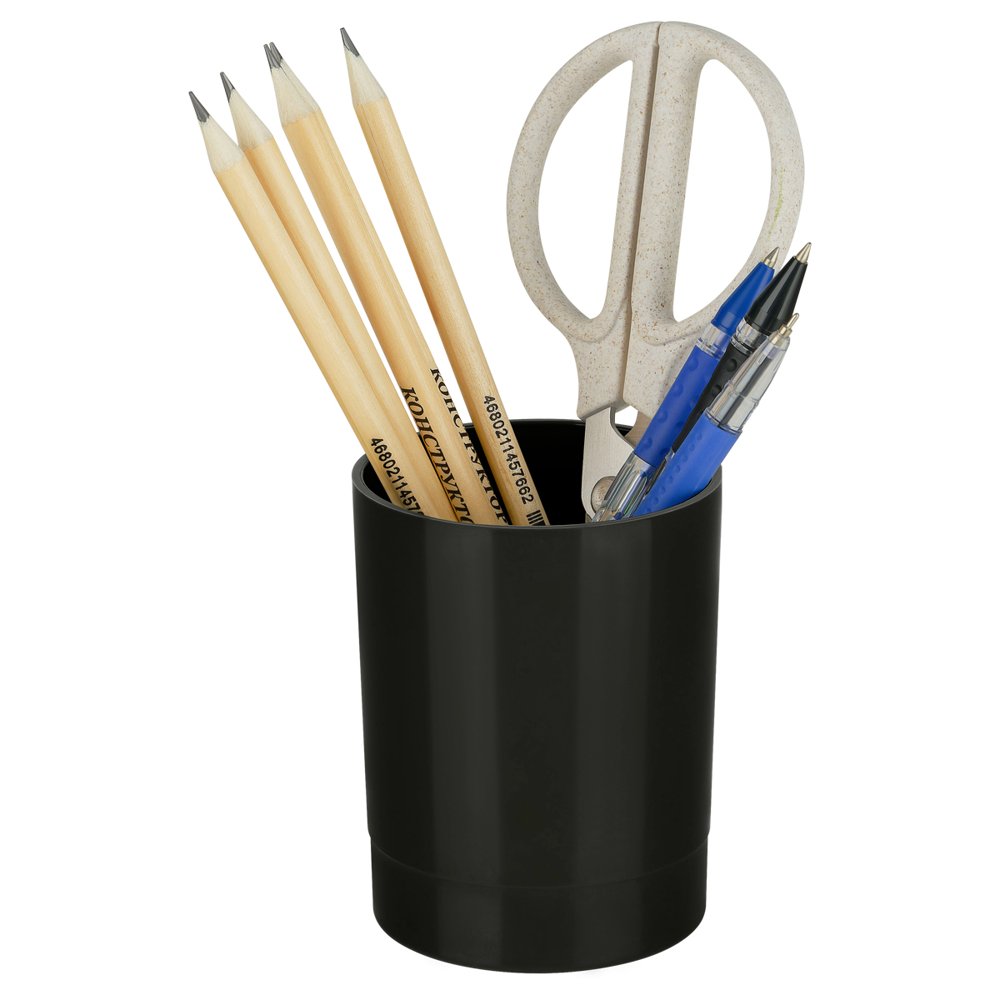 Вместительный стакан для канцелярских принадлежностей классического дизайна.