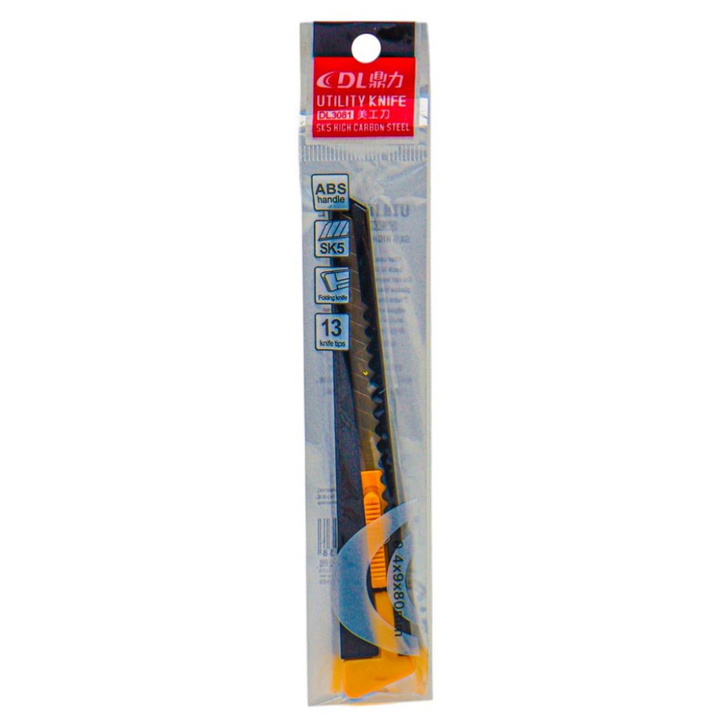 Стальное выдвижное лезвие и пластиковый корпус. Механическая система блокировки лезвия. Ширина лезвия 9 мм. Индивидуальная упаковка в пакет.