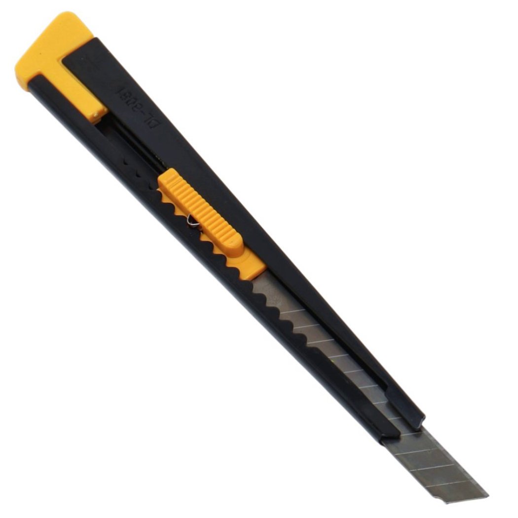 Стальное выдвижное лезвие и пластиковый корпус. Ширина лезвия 9 мм.