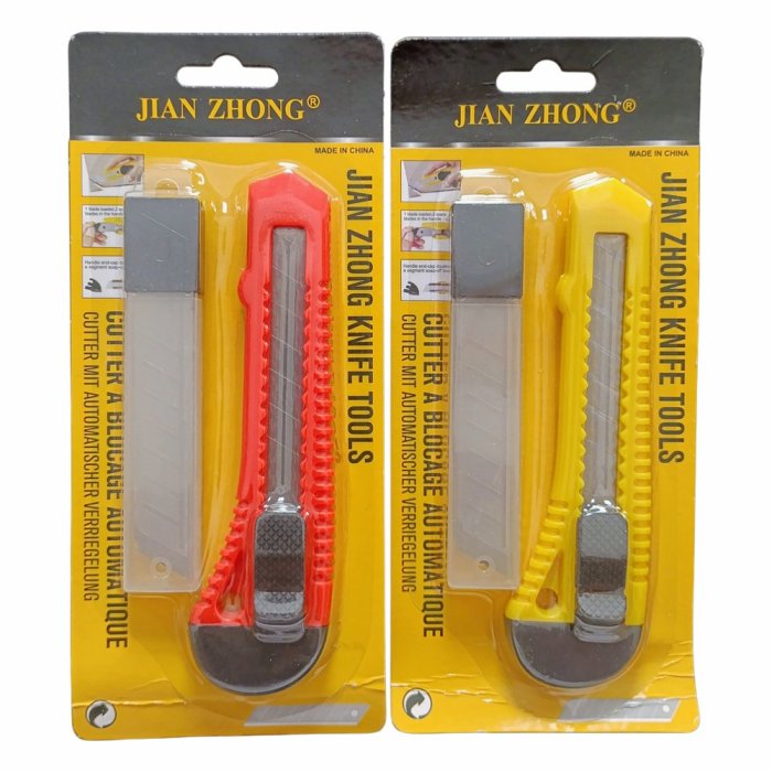 Эргономичная форма «под руку», стальное лезвие двигается по пластиковому корпусу. Фиксация лезвия. Ширина лезвия 18 мм. Набор запасных лезвий в комплекте. Цвета в ассортименте. Индивидуальная упаковка в блистер с европодвесом.