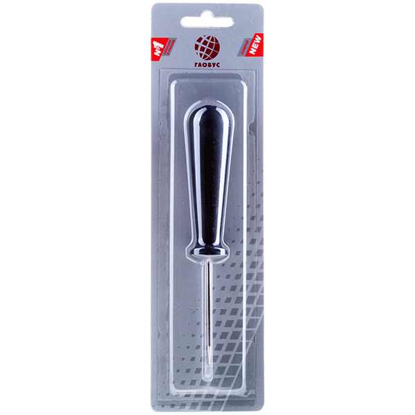 Канцелярское шило. Никелированное покрытие. Обеспечивает прокалывание порядка 30 листов писчей бумаги (за один прокол). Упаковка - блистер.