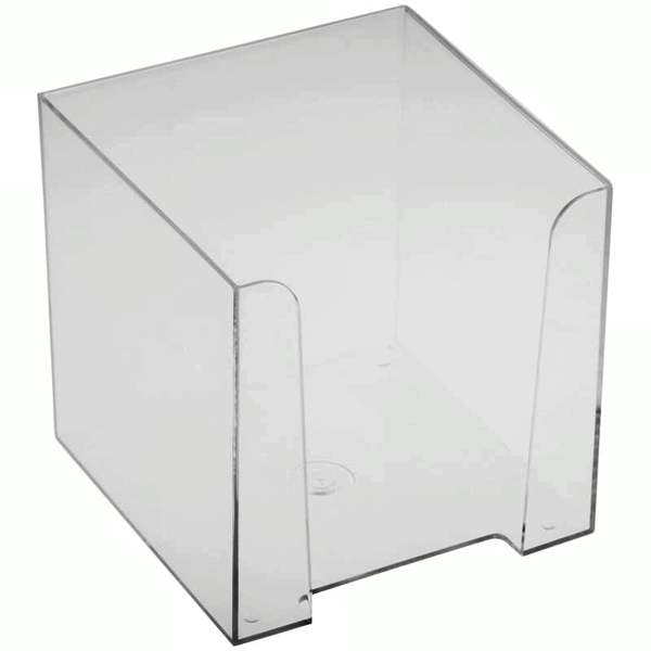 Пластиковый бокс для бумажного блока. Вмещает 1000 листов бумаги, плотностью 80 г/м. Размер дна бокса: 90 × 90 мм.