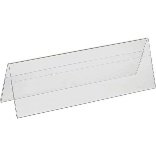 Подставка информационная настольная, размер 300×100 мм. Подставка предназначена для двустороннего размещения информации. Изготовлена из оргстекла(акрил). Поставляется в защитной пленке.