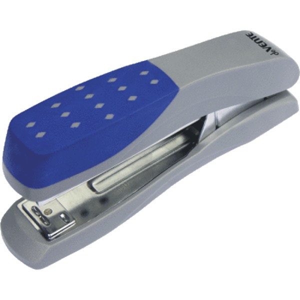 Степлер 24/6&26/6 (мощность 25 листов, глубина скрепления 85,5 мм) пластиковый с каучуковой вставкой, серый с синим