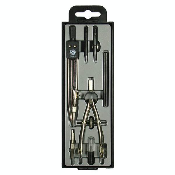 Готовальня - 7 предметов: циркуль стальной, никелированный пенал с запасным грифелем, кронциркуль, карандашная вставка, игольная вставка, ручка, рейсфедерная вставка. Предназначена для детей дошкольного возраста и школьников младших классов. Упакована в пенал с пластиковой прозрачной крышкой и европодвесом. Длина циркуля - 125 мм.