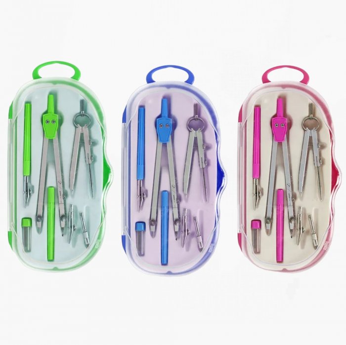 Набор чертежный 7 предметов, в пластиковом пенале, цвета в ассортименте.