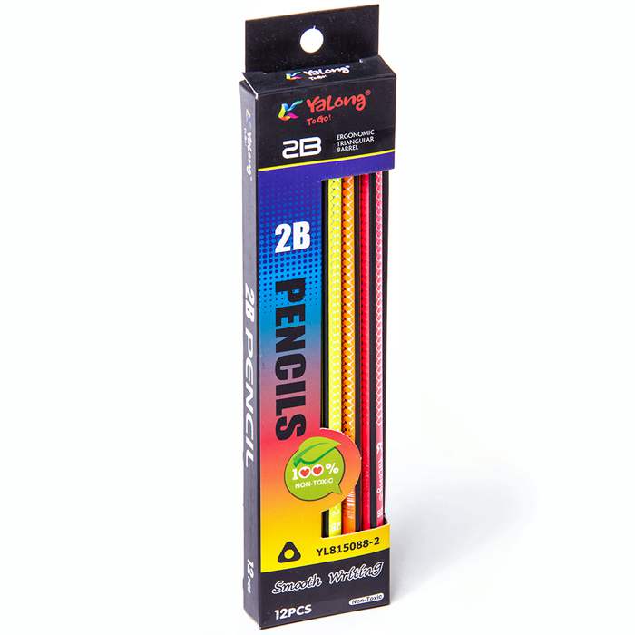 Карандаш чернографитный Yalong в деревянном трехгранном корпусе ярких цветов. Твердость грифеля — 2В.