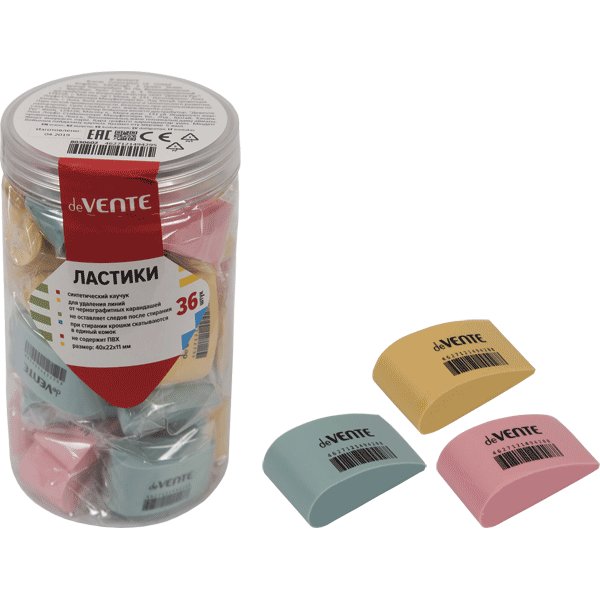 Ластик "deVENTE. Speedy" синтетический каучук, каплевидный цветной 40x22x11 мм, dust-free - крошки скатываются в один большой комочек, который потом легко убрать с бумаги, в индивидуальной упаковке.