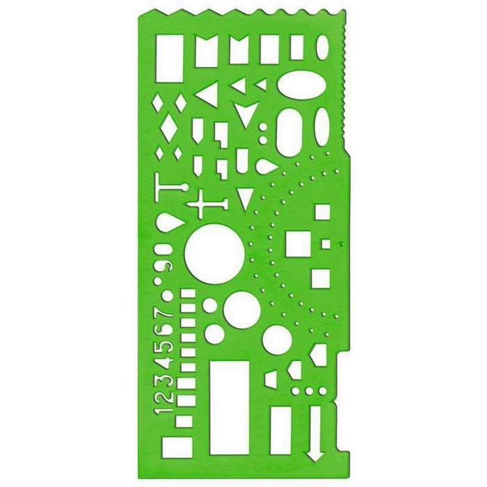 - Необходима при создании графических изображений и построении карт. Содержит 65 специальных элемента и линейку 20 см с отливной шкалой. Индивидуальный штрих-код на единице изделия. Сертифицированный полистирол.