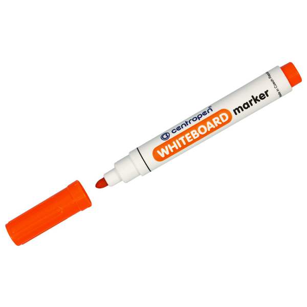 Маркер CENTROPEN используется для письма на белых стираемых досках. Надписи, сделанные маркером, удаляются сухим способом стирания. Круглый наконечник позволяет провести линию толщиной 2,5 мм. Цвет чернил: оранжевый.