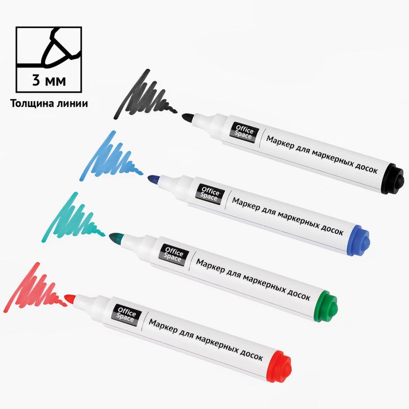 Набор маркеров предназначен для письма на магнитно-маркерных досках. Закругленный пишущий узел. Толщина линии 3,0 мм.