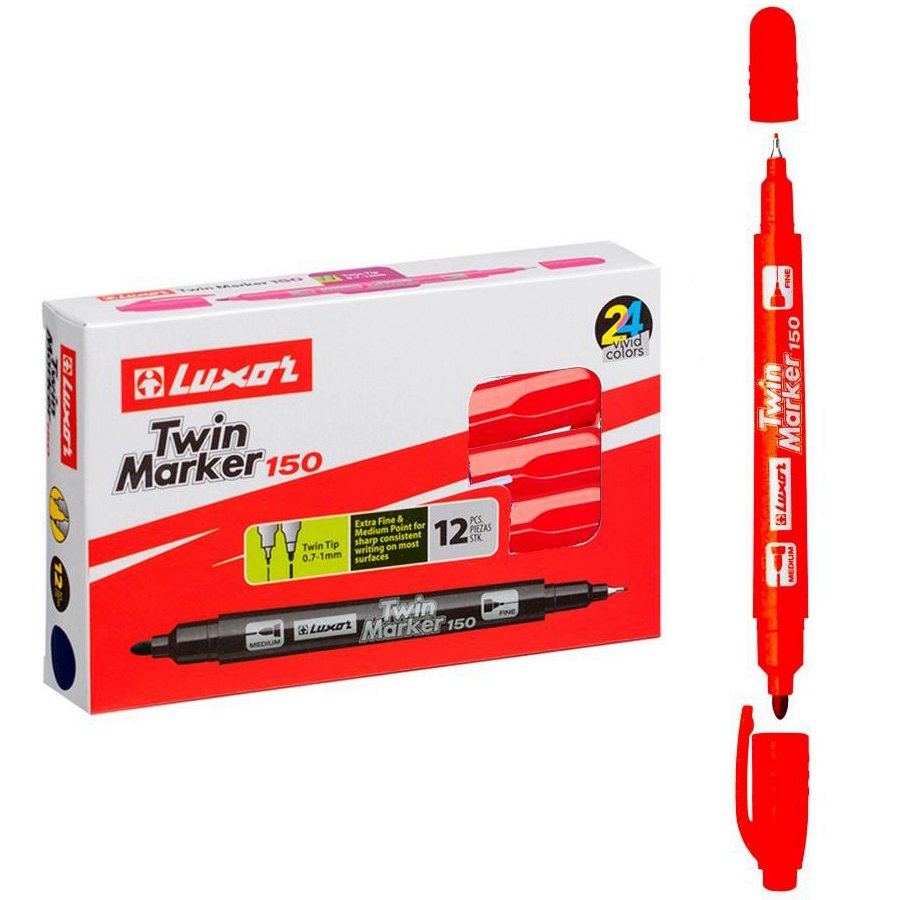 Маркер перманентный двухсторонний Luxor "Twin Marker 150" красный, пулевидный, 0,7/1мм арт.3013