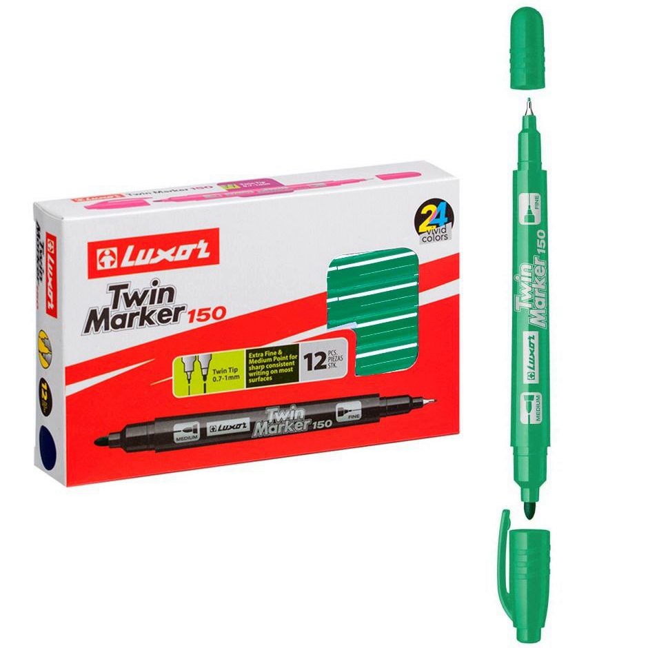 Маркер перманентный двухсторонний Luxor "Twin Marker 150" зеленый, пулевидный, 0,7/1мм арт.3014