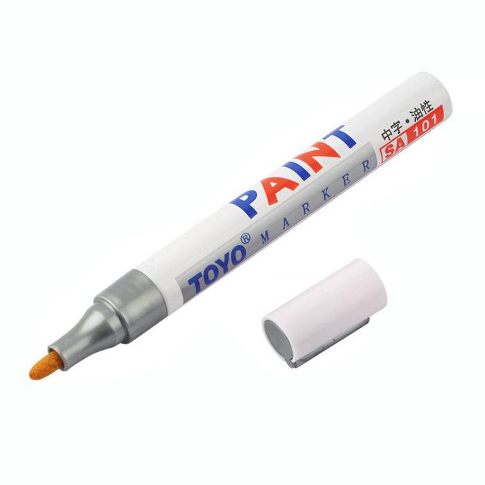 Маркер по металлу PAINT MARKER "TOYO". Перманентные маркеры, пишущие на любых поверхностях (Стекло, Металл, Пластик, Дерево и т.д.). Насыщенный цвет сплошной линии, оставляемый маркером, не зависит от цвета поверхности. Толщина линии 1,5-2,0 мм. Диаметр алюминиевого корпуса 15 мм. Часто используется в промышленности. Краска маркера на масляной основе. Пишет до последней капли.