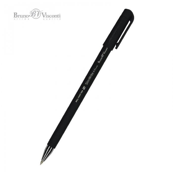 Ручка шариковая на масляной основе из серии SlimWrite. BLACK. Цвет чернил - синий. Пишущий узел - 0.5 мм. Тонкий, прорезиненный корпус удобно держать в руке, ручка не будет выскальзывать, что придаст дополнительные удобства при написании текстов. Тонкие округлые корпуса ручек SlimWrite обладают повышенной эргономичностью. Ручки SlimWrite. BLACK представлены в строгих корпусах черного цвета. Благодаря покрытию Soft Touch и текстурированным надписям при письме, пальцы получают приятные ощущения и не скользят. Защитный колпачок черного цвета дополнен упругим клип-зажимом. Пишущий узел Premec производства Швейцарии закреплен внутри наконечника из металла и проводит линии толщиной 0.5 мм.
