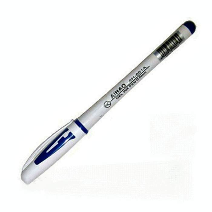 Ручка гелевая Aihao 801 - бюджетный вариант, цвет чернил синий, имеет тонкий игольчатый стержень 0,5 мм (сменный). Корпус изготовлен из белого непрозрачного пластика, декор в цвет чернил. Имеет удобный прорезиненный захват (предотвращает скольжение).