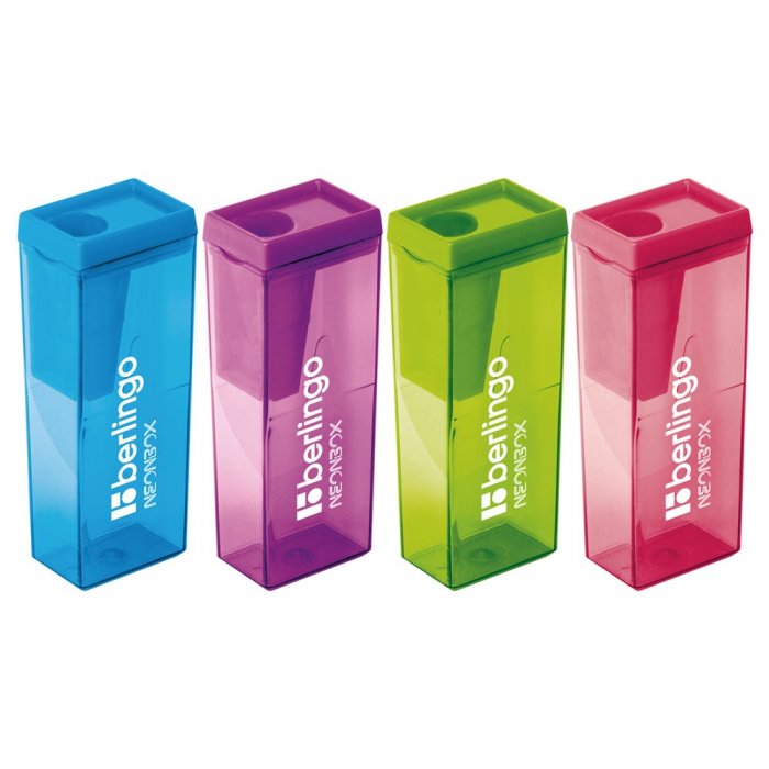 Точилка пластиковая Berlingo "NeonBox" 1 отверстие, контейнер, ассорти BBp_15008