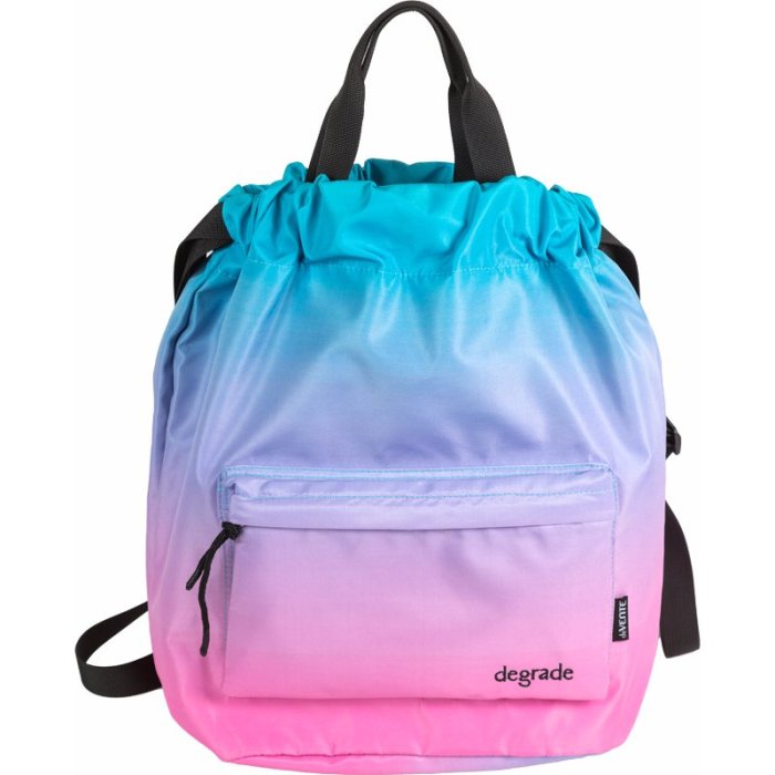Сумка-рюкзак "deVENTE. Degrade" 39x32x19 см, вес 250 г, плотный износостойкий нейлон с водоотталкивающей пропиткой, объемная печать, на утяжке, с ручками и плечевыми лямками, с передним карманом на молнии, на подкладе, внутренний карман на липучке, текстильные бегунки, вышивка.