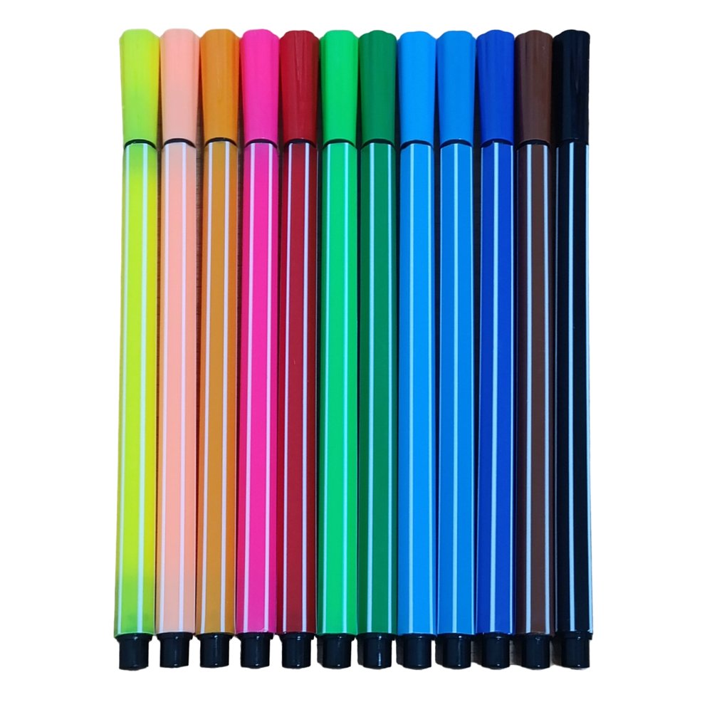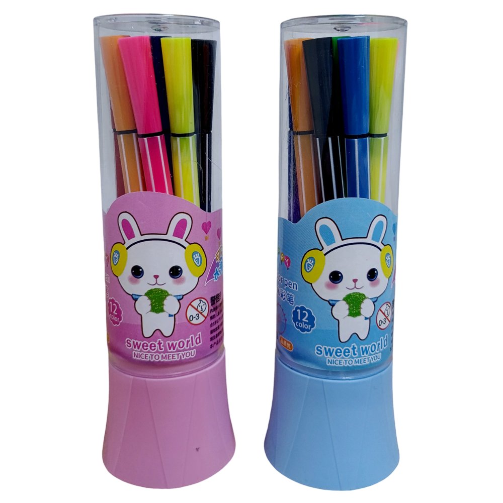 Набор из 12 фломастеров ярких и сочных цветов. Пластиковый футляр в виде тубуса для удобного хранения. Корпус фломастеров изготовлен из полипропилена и имеет оригинальный полосатый дизайн. Безопасные чернила на водной основе легко отстирываются и смываются. Колпачок не вентилируемый, что предотвращает засыхание стержня.