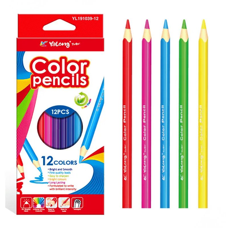 Карандаши трехгранные деревянные цветные Yalong 12 цветов. Яркие насыщенные цвета, устойчивы к выцветанию, высококачественный мягкий грифель. Предназначены для рисования и письма по бумаге, картону, дереву.