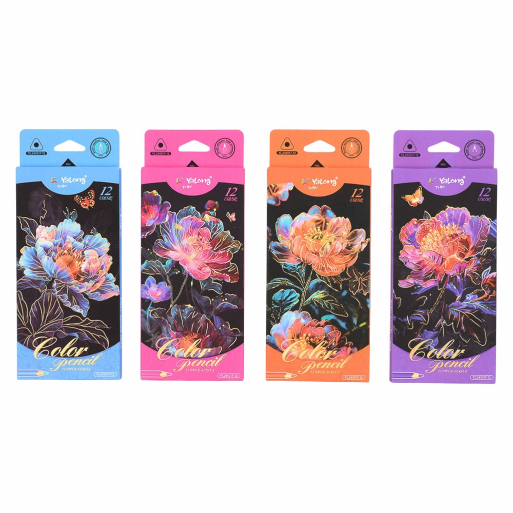 Карандаши трехгранные деревянные цветные Yalong 12 цветов.