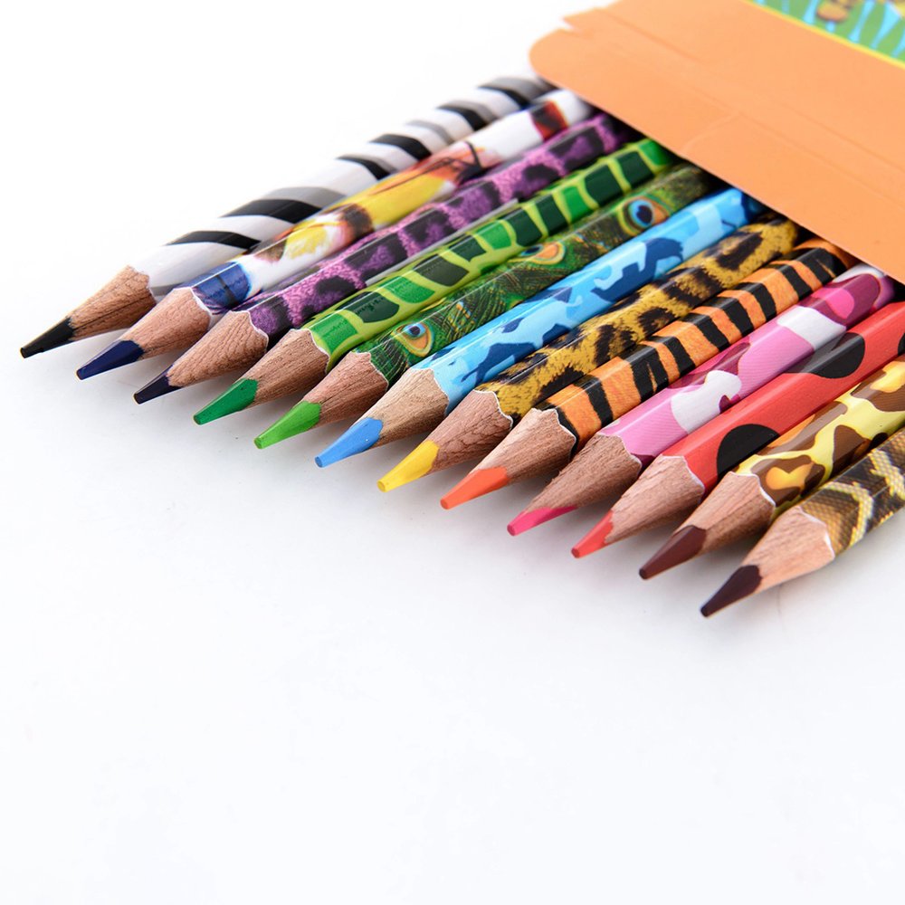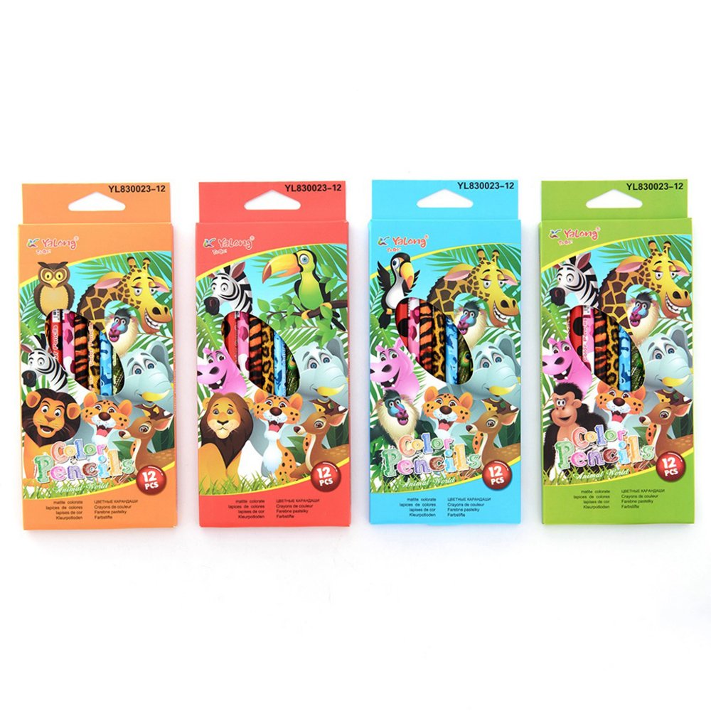 Карандаши шестигранные деревянные цветные Yalong 12 цветов. Корпус с ярким цветным рисунком.