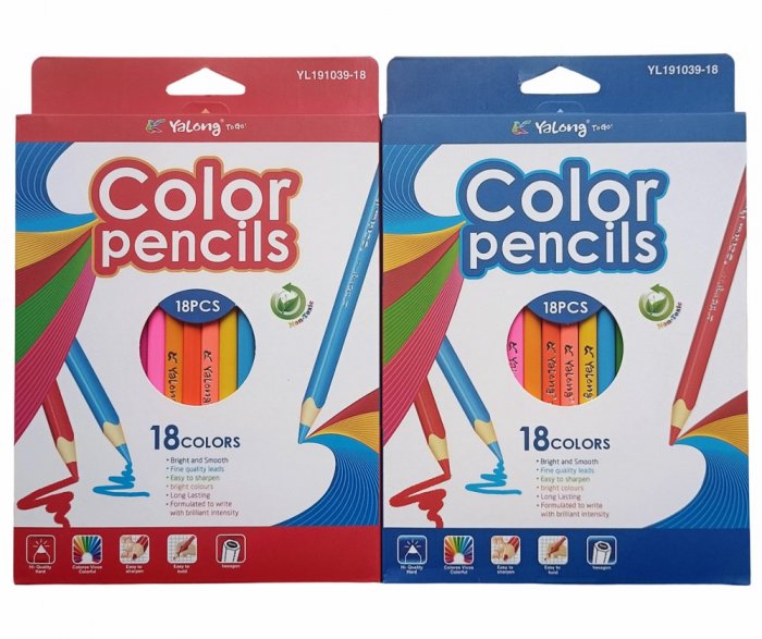 Карандаши трехгранные деревянные цветные Yalong 18 цветов. Яркие насыщенные цвета, устойчивы к выцветанию, высококачественный мягкий грифель. Предназначены для рисования и письма по бумаге, картону, дереву.