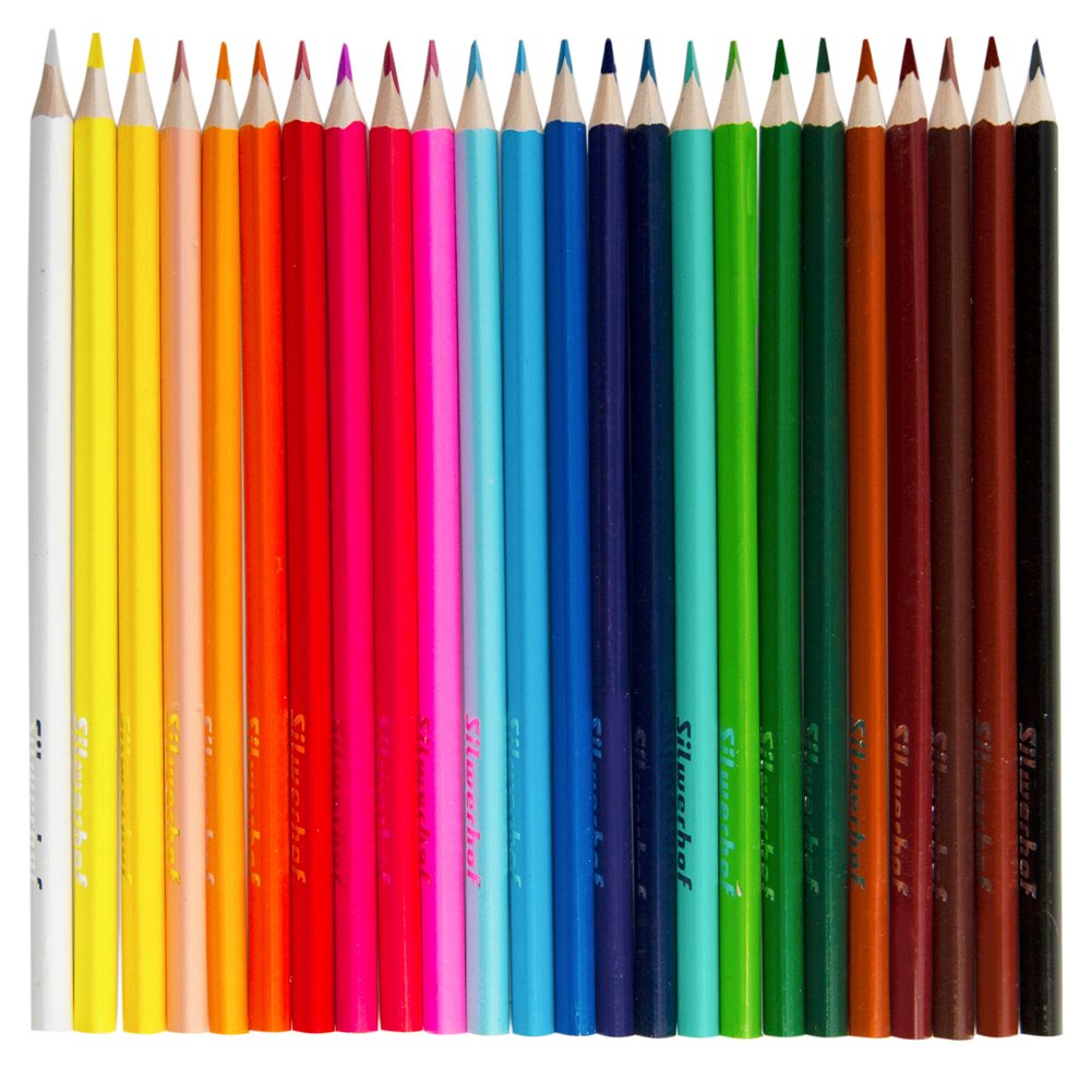 Набор из 24 карандашей ярких цветов, трехгранной формы и прочным грифелем.