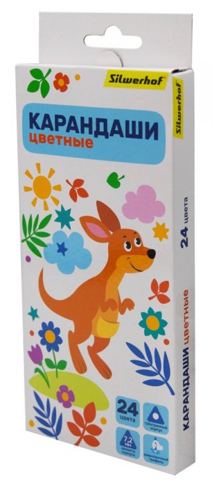Карандаши цветные SILWERHOF Веселые друзья. 24 цвета, трехгранные, дерево. Диаметр корпуса - 7,2 мм. Диаметр грифеля - 2,8 мм. Коробка с европодвесом.