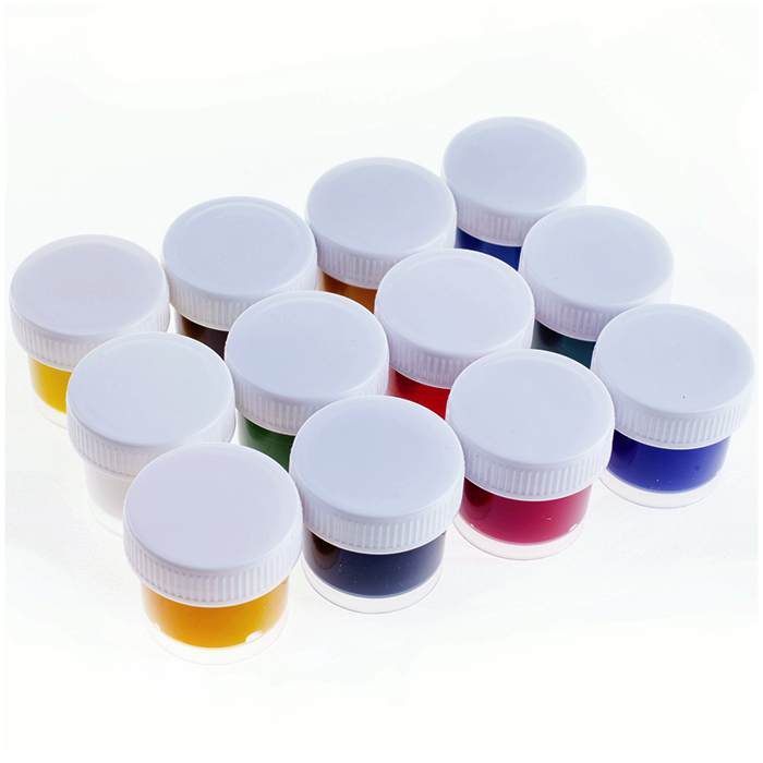 Набор 9 цветов в баночках, объем краски одного цвета: 15 мл.