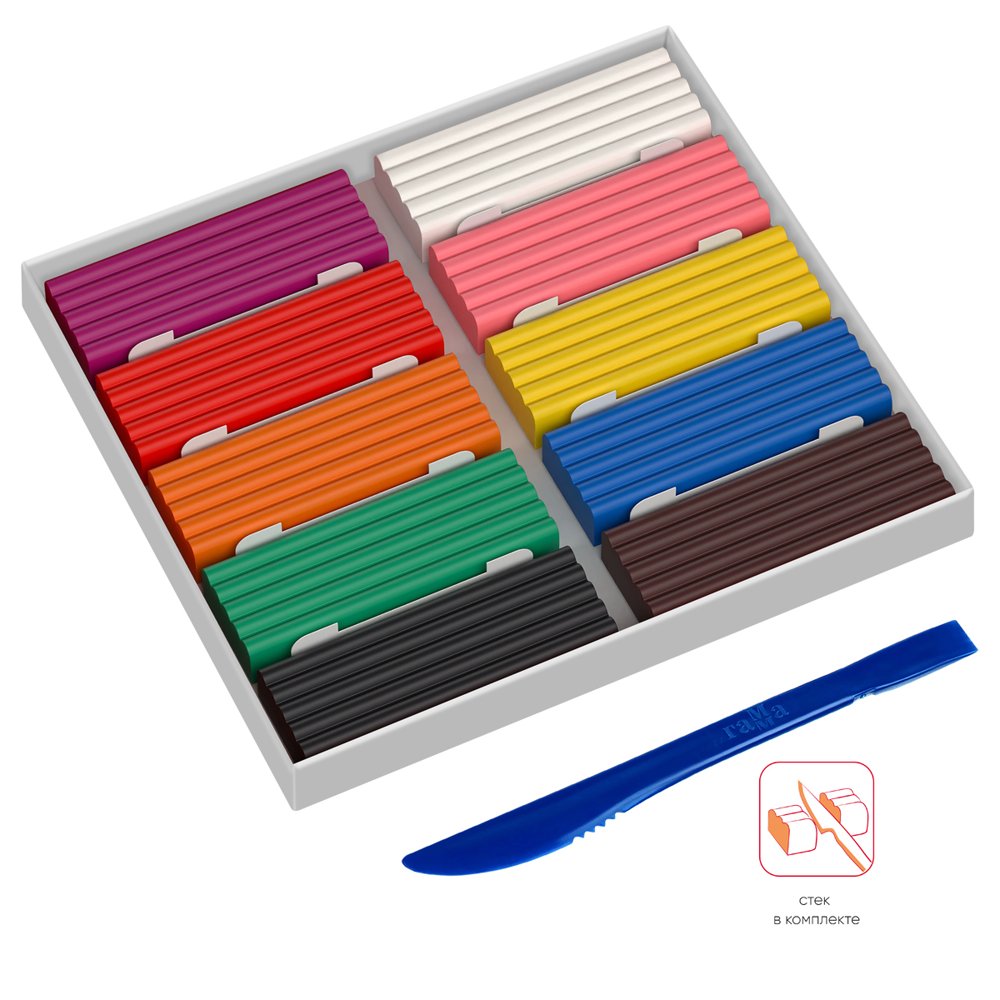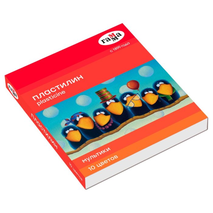 Классический пластилин ГАММА серии «Мультики» рекомендован педагогами для укрепления мышц кисти и развития мелкой моторики. После разминания обретает однородную структуру и пластичность: хорошо смешивается и размазывается, но не крошится. В наборе 10 цветов: жёлтый, оранжевый, красный, розовый, фиолетовый, синий, белый, чёрный. Вес одного бруска — 20 г. Пластиковый стек в комплекте.