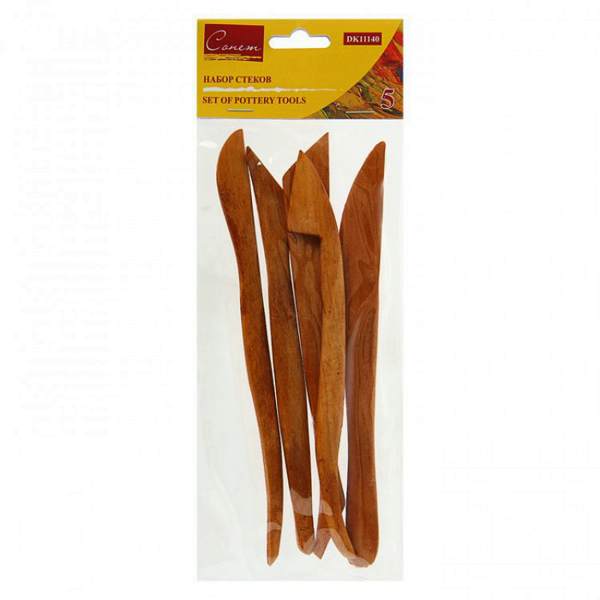 Стек деревянный, набор 5 штук ЗХК "Сонет" 20 см DK11140 поможет вам создать маленькое произведение искусства. Лепите изящные формы, получайте уникальные фигурки и собирайте целые диорамы. Специальный аксессуар сохранит рабочее пространство в чистоте и порядке. В набор входят 5 стеков различных форм.